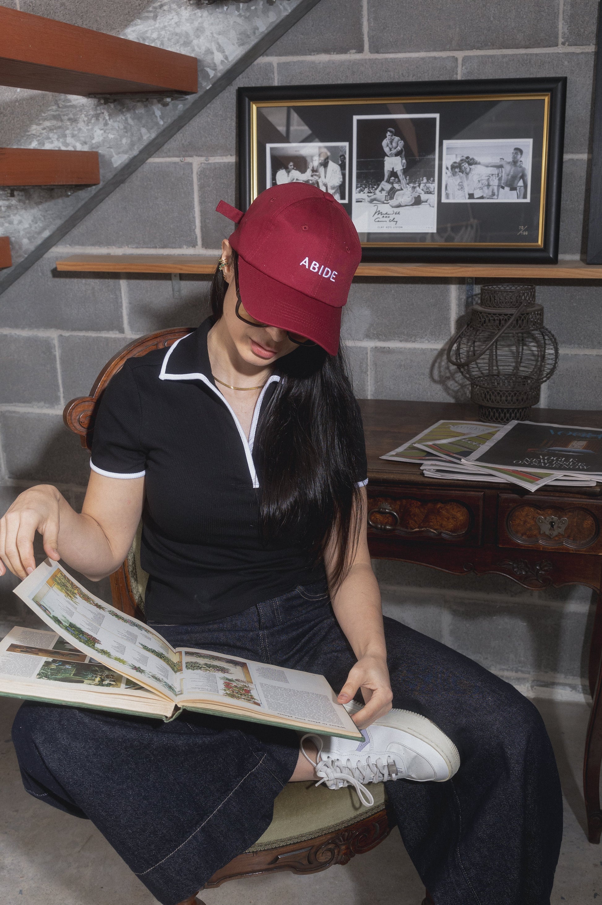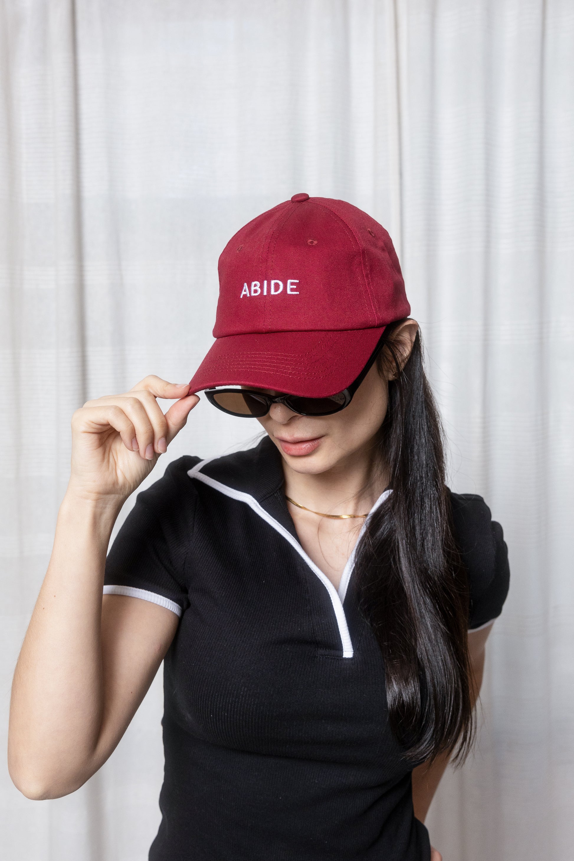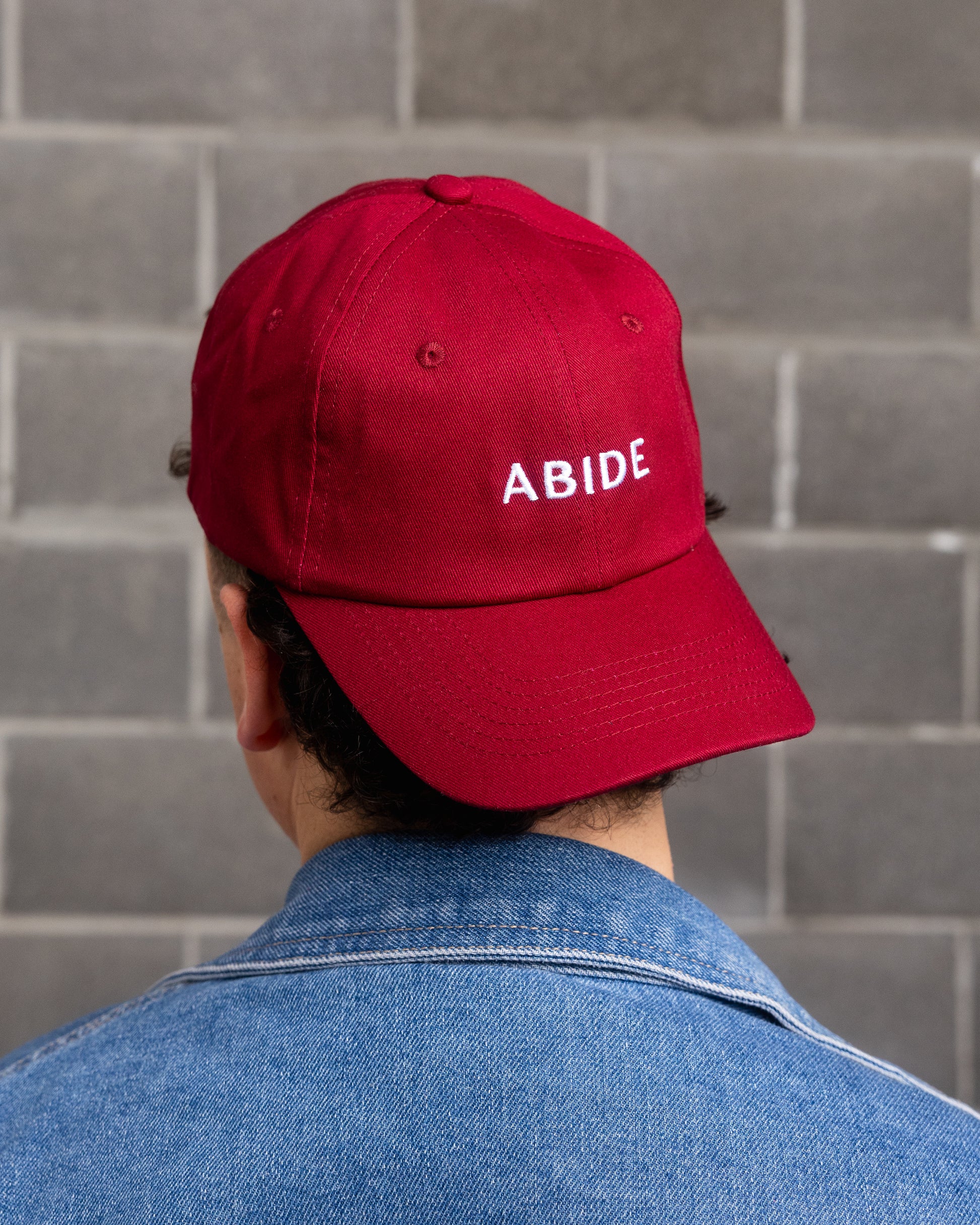 - “ABIDE” embroidery on the front